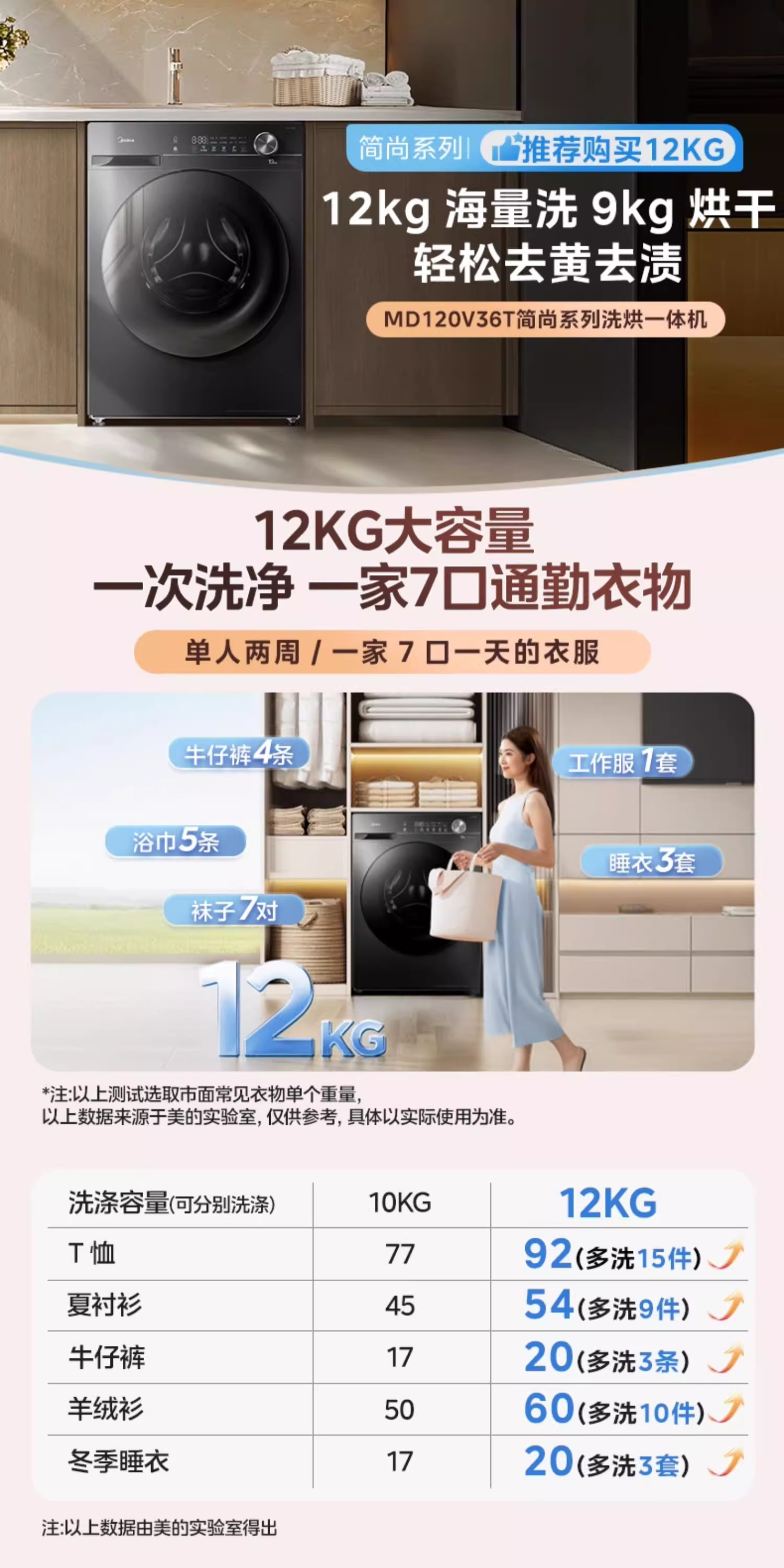 12/10kg滚筒洗衣机除菌全自动大容量家用洗烘一体36T