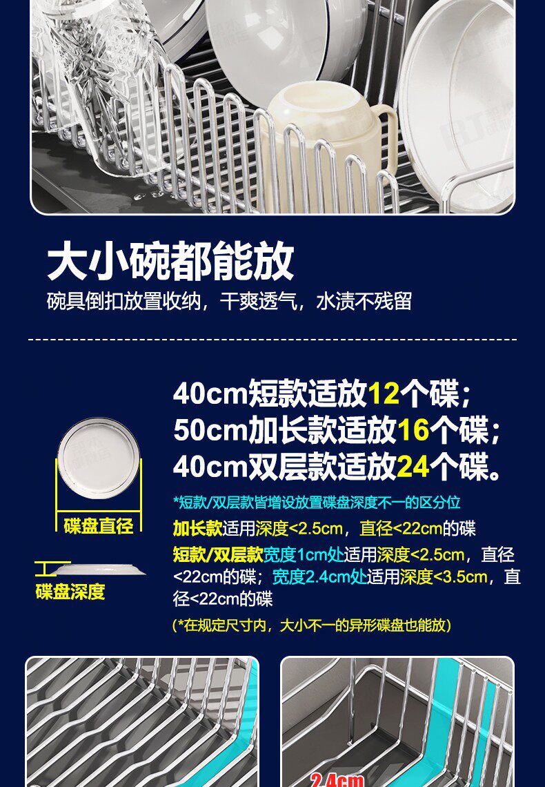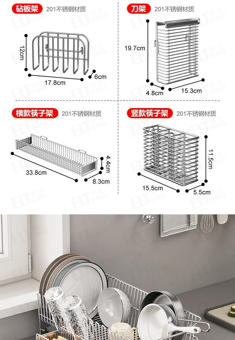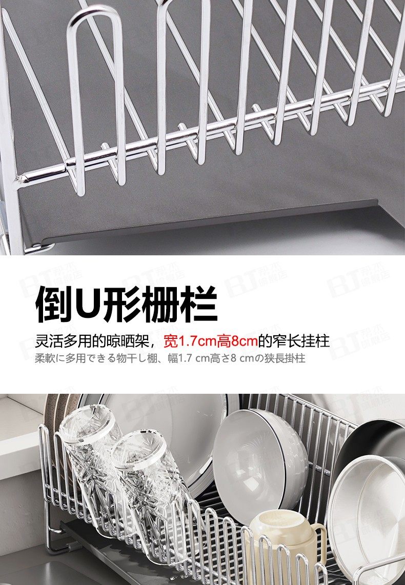 304不锈钢厨房碗碟架沥水架晾碗...