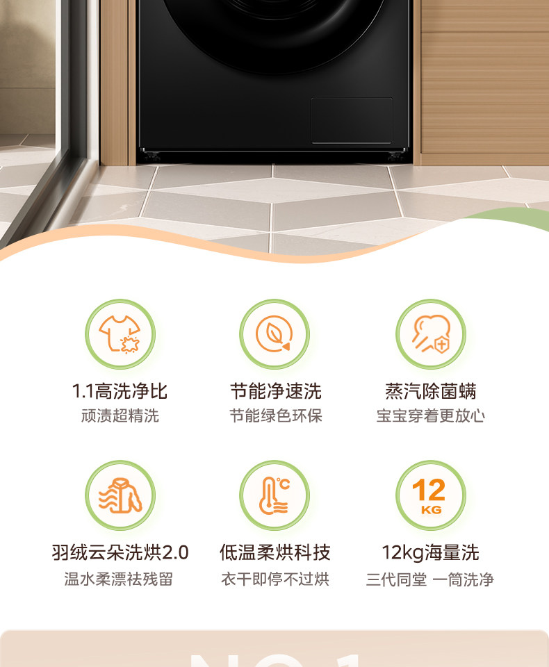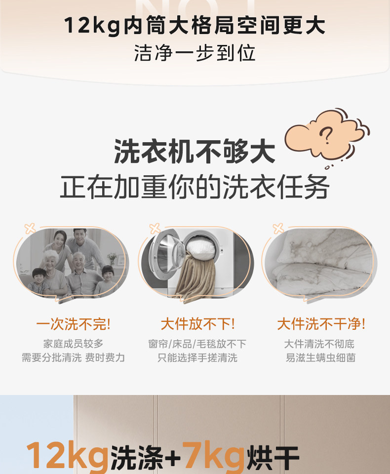 12/10kg滚筒洗衣机除菌全自动大容量家用洗烘一体36T