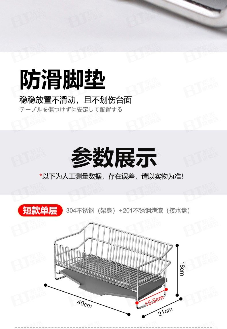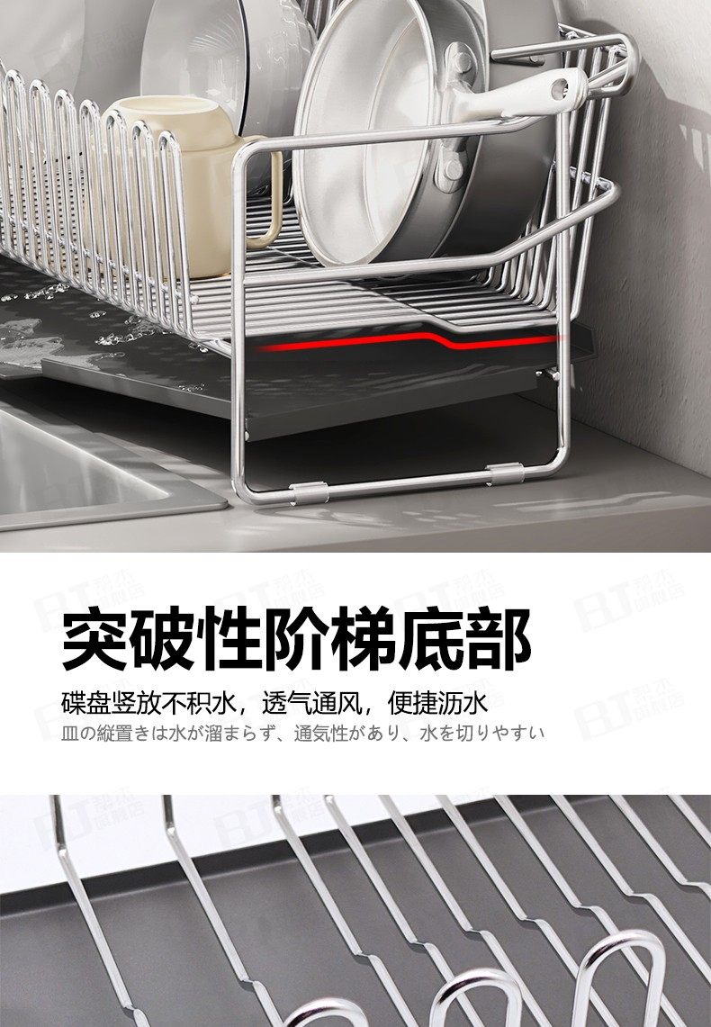 304不锈钢厨房碗碟架沥水架晾碗...